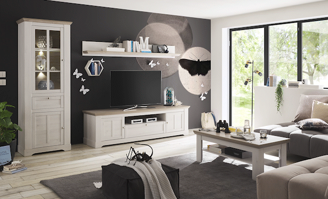 Ein gemütliches Wohnzimmer schreit geradezu nach Landhaus. Das wunderschöne Wohnprogramm zaubert dir ein unvergleichliches Wohnambiente in deine vier Wände. Der moderne Landhauslook in weißer Eiche Nachbildung in Kombination mit Eiche Dekor lässt die Herzen von Landhaus-Liebhabern höherschlagen. Die kleinen Knopfgriffe verleihen dem Möbelstück das gewisse Extra. FALLA bietet dir dank seiner Vielfalt perfekte Wohnlösungen und lässt dir kreativen Handlungsspielraum bei der Kombination der verschiedenen Möbelstücke. Tür auf – Landhaus rein!