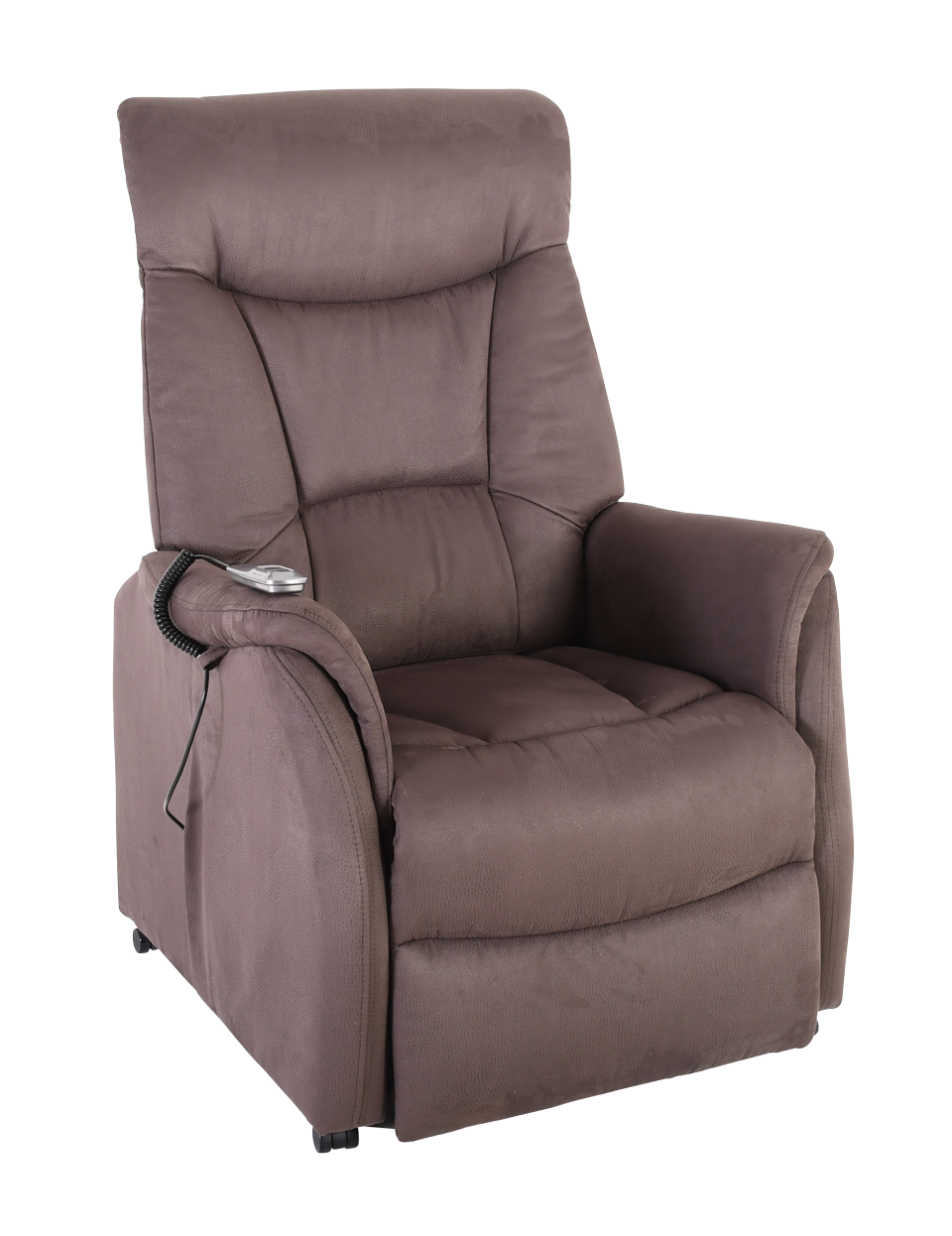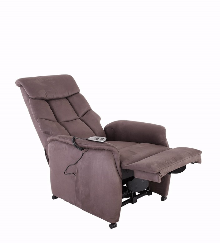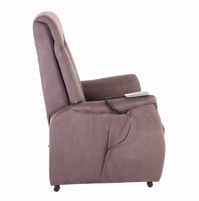Bezug Microfaser, 100% Polyester, Polsterung Stahlwellenunterfederung und Schaumstoff, inkl. motorischer Aufstehhilfe, motorischer Kopfteilverstellung, Relaxfunktion und Fernbedienung, Füße Rollen schwarz, B/H/T ca. 75x113x87 cm.