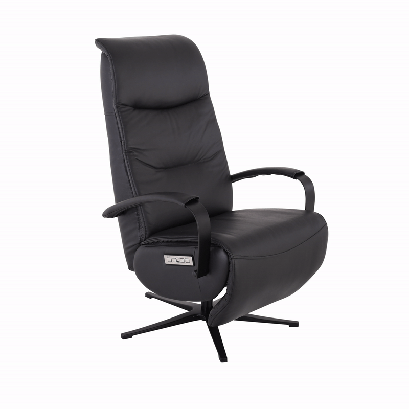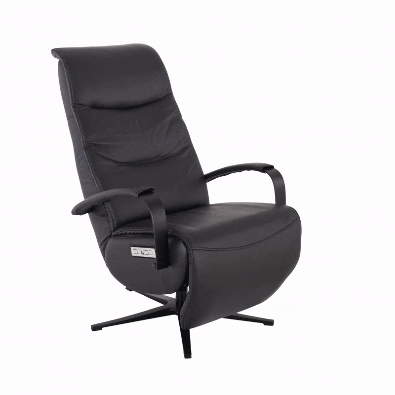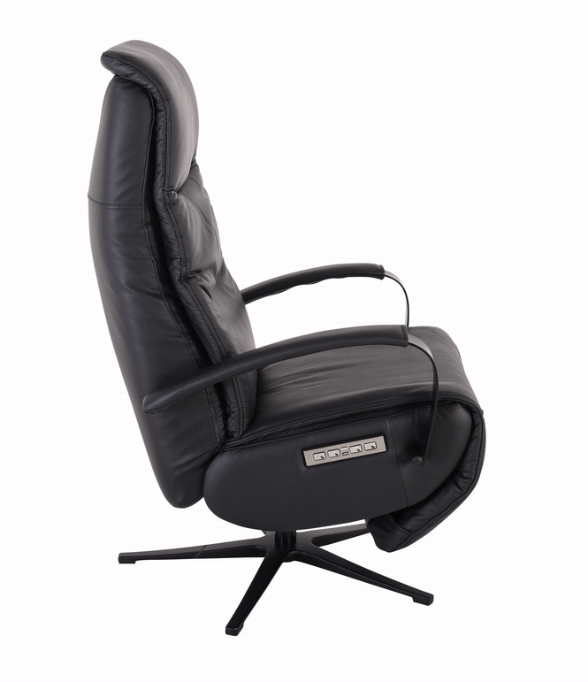 Bezug Leder schwarz, Polsterung Stahlwellenunterfederung und Schaumstoff, inkl. motorischer Kopfteilverstellung, Relaxfunktion und Fernbedienung, Füße Rollen schwarz, B/H/T ca. 67x113x86 cm.