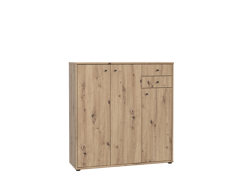 Das Möbelstück im modernen Design überzeugt durch seinen ansprechenden Holz-Look in Artisan Eiche Nachbildung und den Absetzungen in Schwarz Eiche Nachbildung. Zudem ist es mit schwarzen Metallgriffen ausgestattet, die einen tollen Kontrast erzeugen.