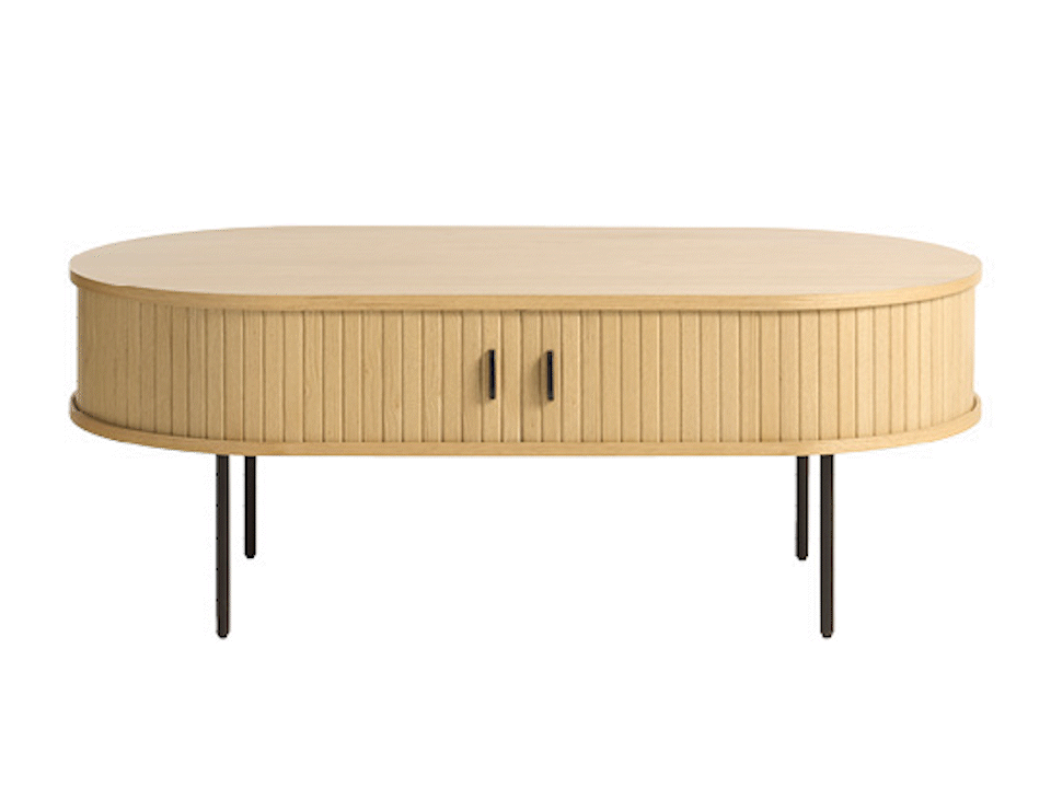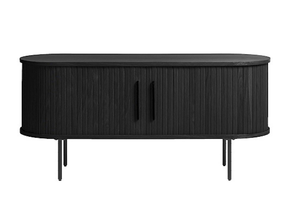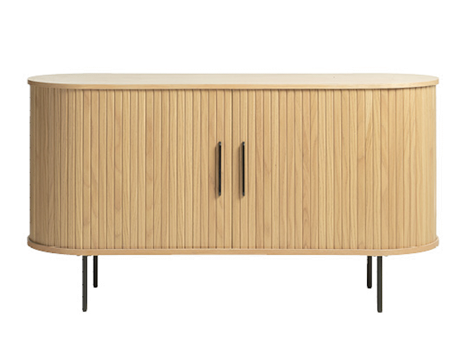 Das Sideboard Nola besticht durch seine Lamellen-Schiebetüren und die abgerundeten Kanten. Mit diesem Sideboard gibst Du Deinem Wohnzimmer einen trendigen Retro-Touch. Die tolle Holzoptik des Sideboards zieht auf jeden Fall alle Blicke auf sich und verstaut ganz nebenbei jede Menge Geschirr, Vasen oder Sonstiges im Innenraum. Nola gibt es auch als High- und Lowboard und als Couchtisch.